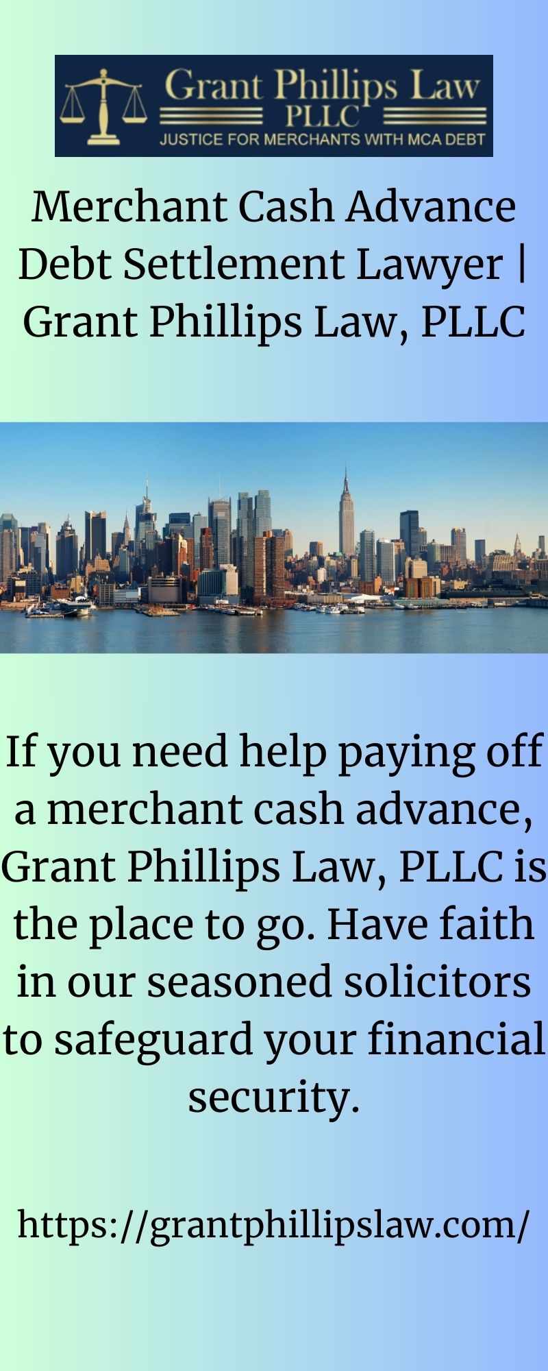 Get the legal support you need for your business with Grantphillipslaw.com. Our experienced team specializes in Merchant Cash Advances for law firms.