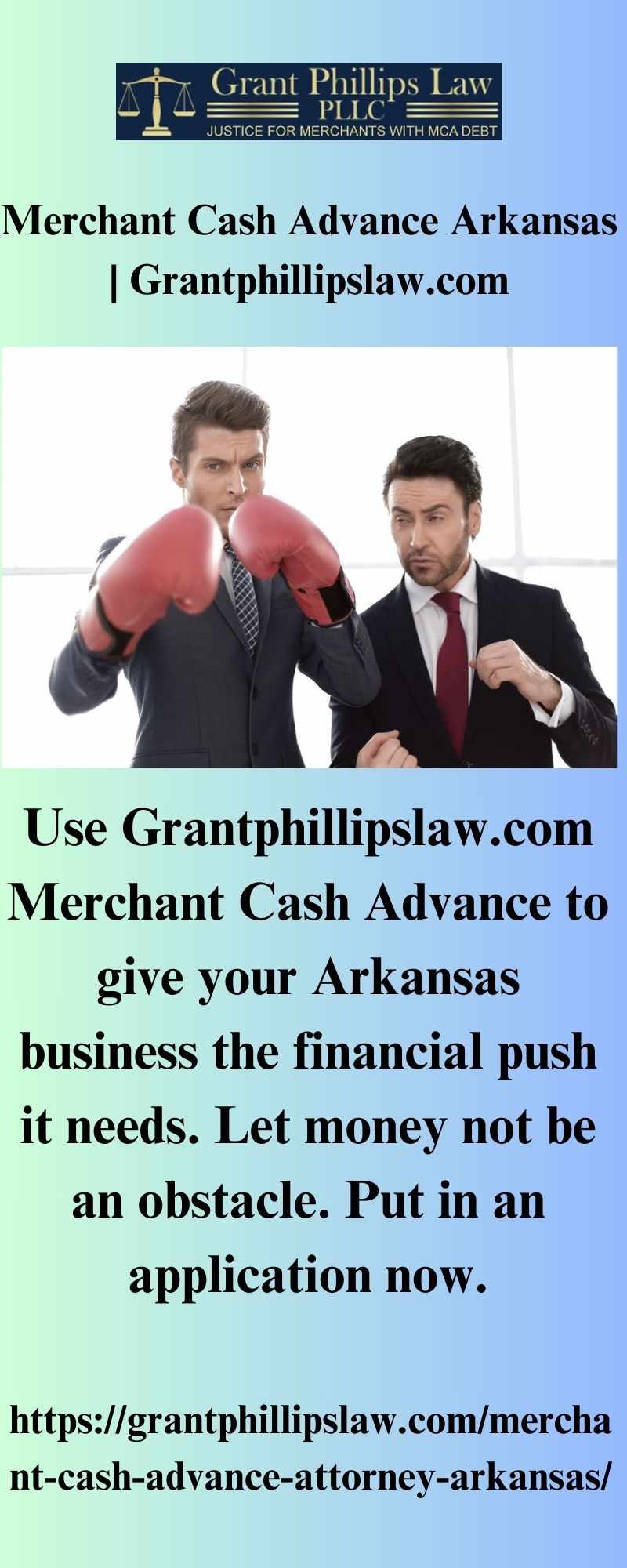 Use Grantphillipslaw.com Merchant Cash Advance to give your Arkansas business the financial push it needs. Let money not be an obstacle. Put in an application now.